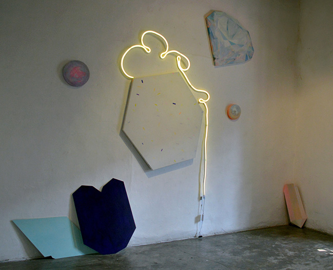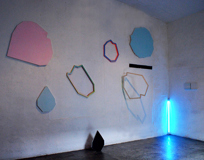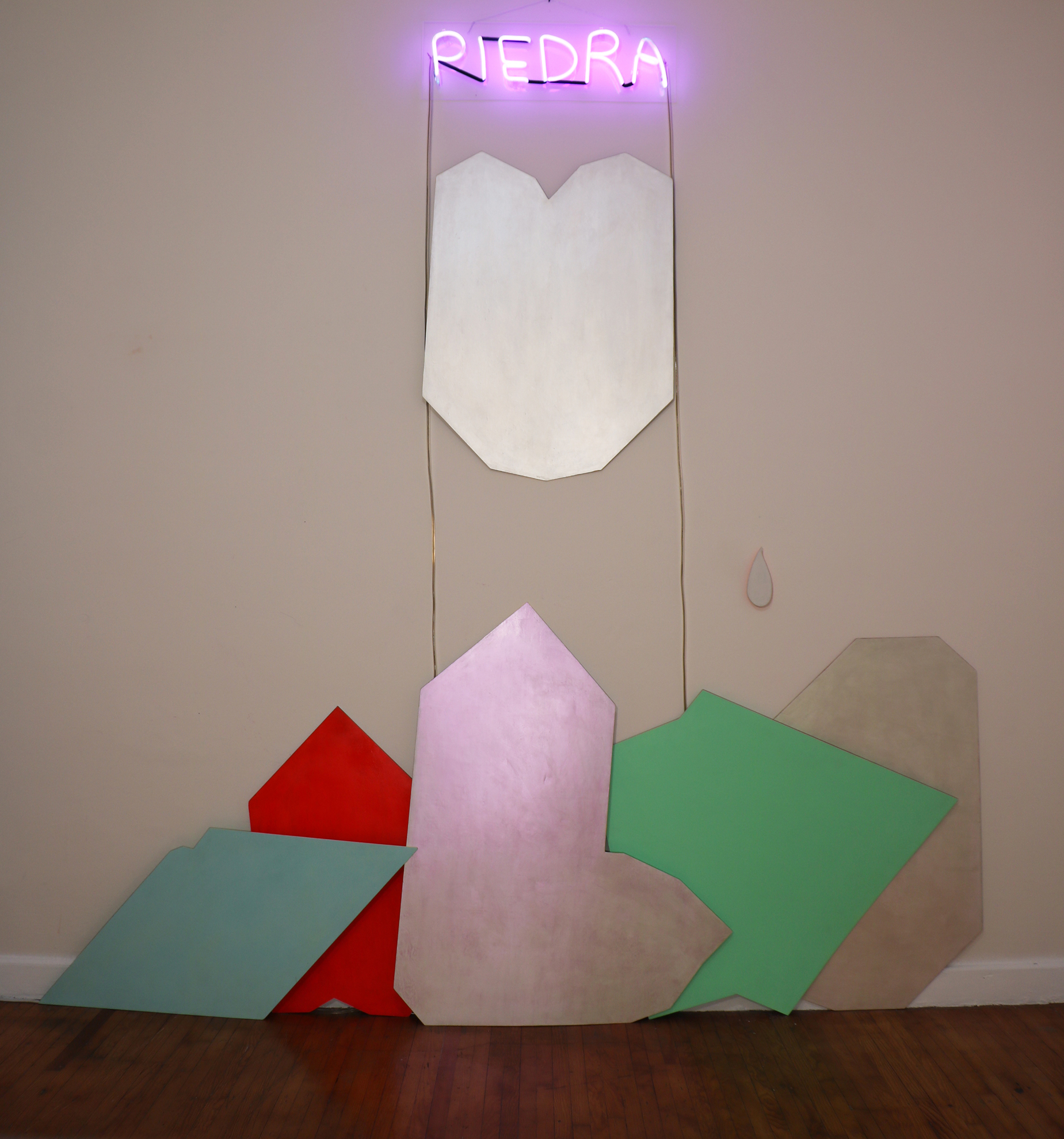 Una piedra fue una montaña. Acrílico sobre madera y luz neon